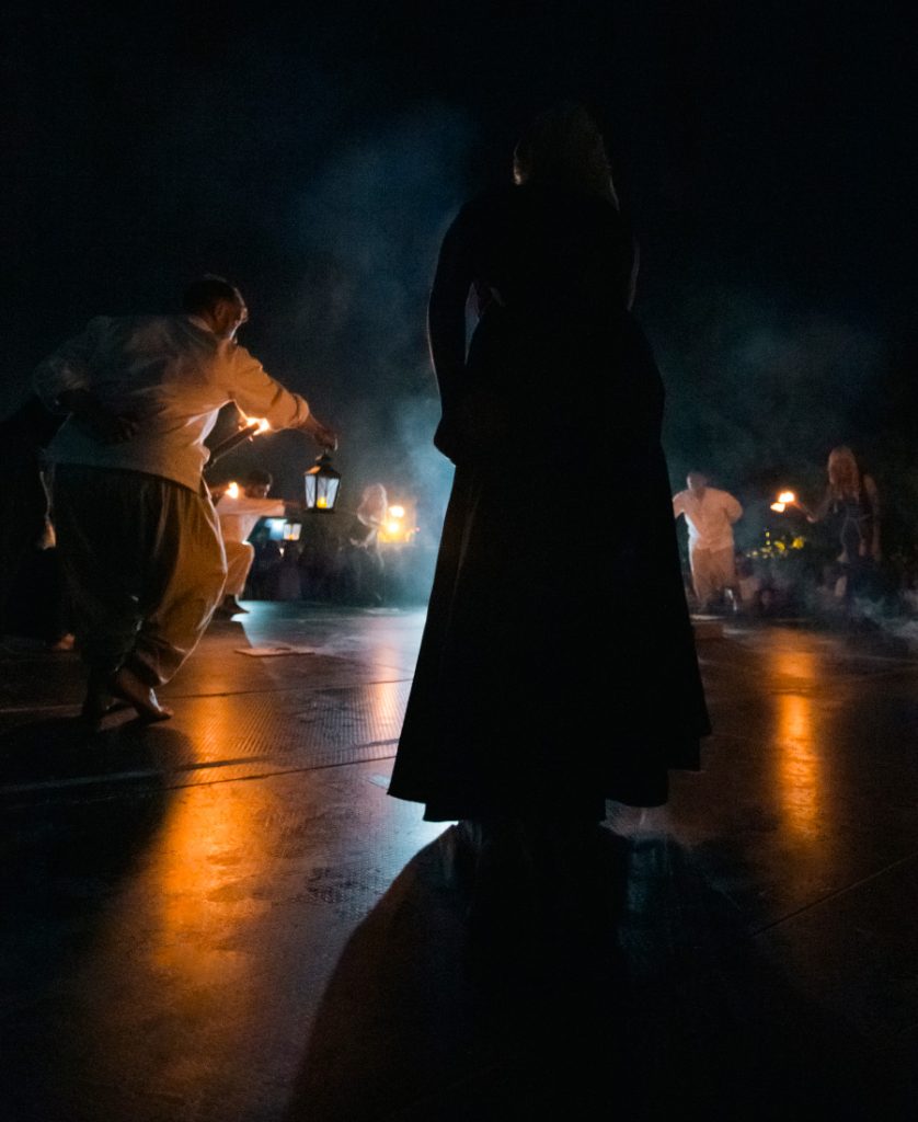 La «Noite Meiga» es una festividad celebrada en Sarria el último sábado de agosto. Después de la medianoche se realiza la «Danza da Noite Meiga», en la que las «Meigas» y los «Trasgos» bailan con antorchas para espantar a los malos augurios cantando un conjuro para alejar los males.
